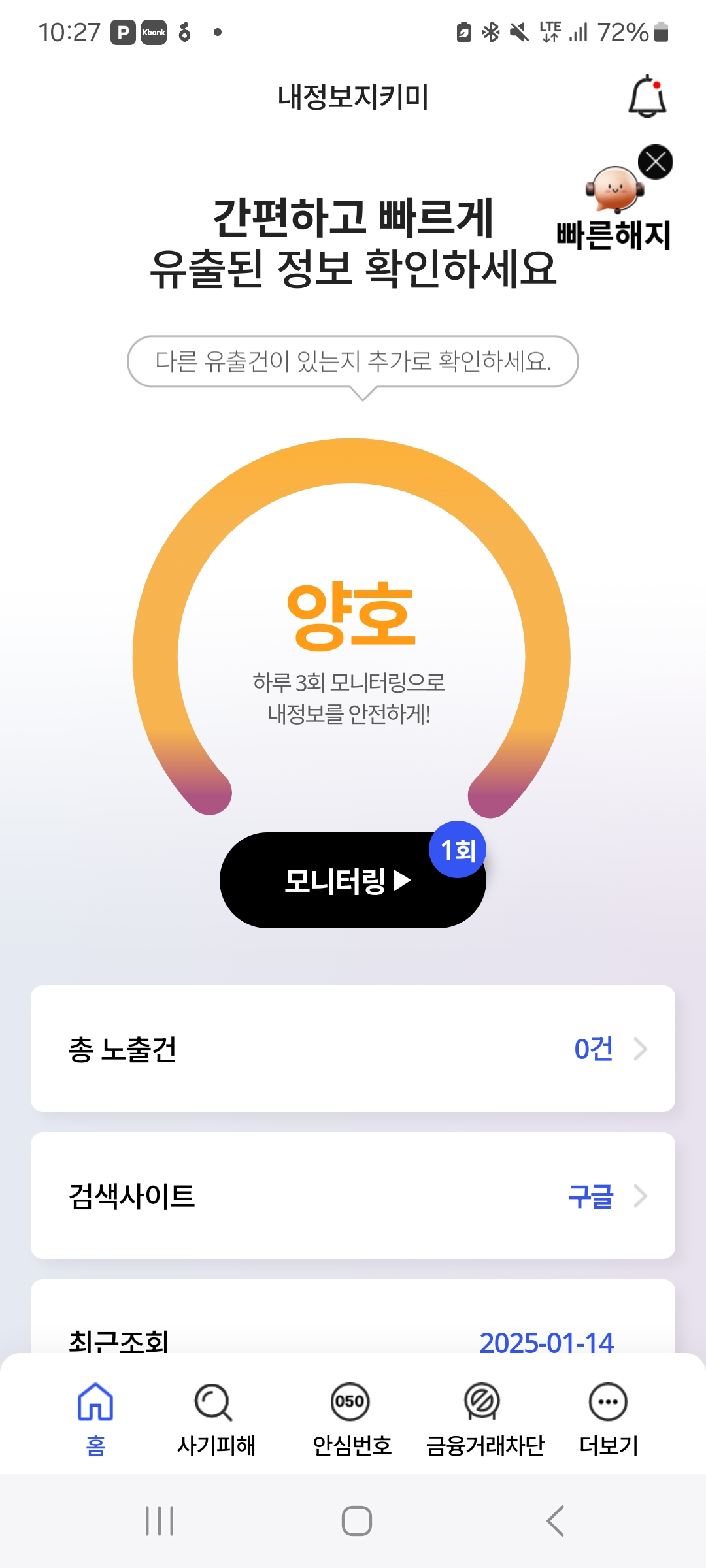 저는 이미 안심번호를 발급 받았고, 오랜만에 정보유출 모니터링도 해봤어요 :)