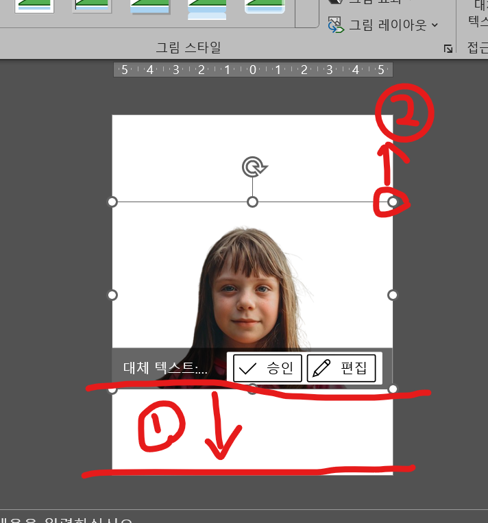 2번 꼭지부분을 클릭해서 드래그로 사진을 키워줘요