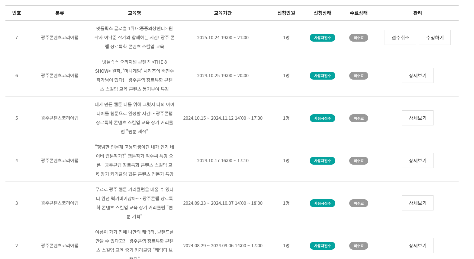 교육신청 | 통합지원 : 광주정보문화산업진흥원