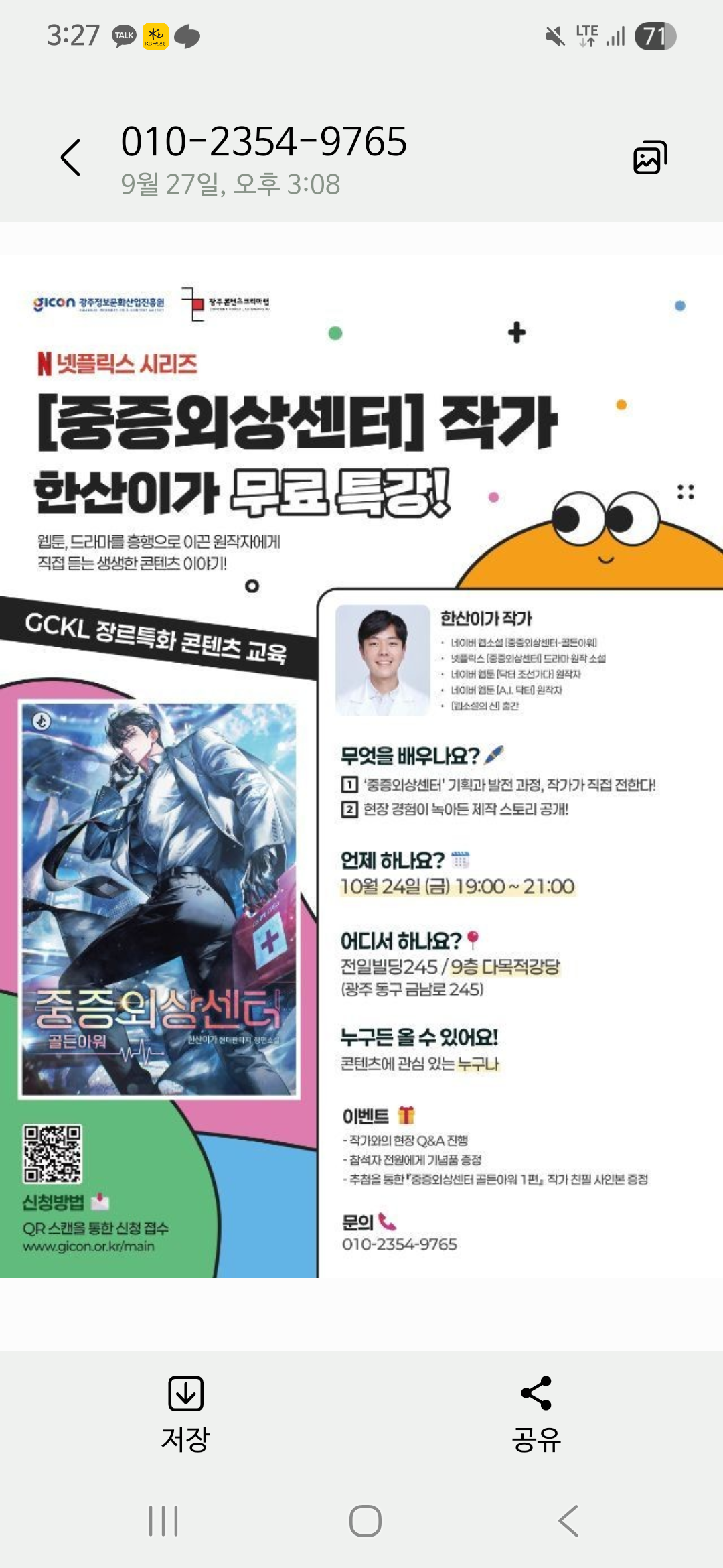 이런 나에게 날아온 문자 한통