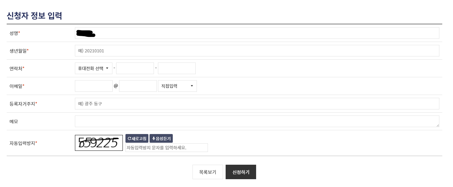신청자 정보를 입력하고