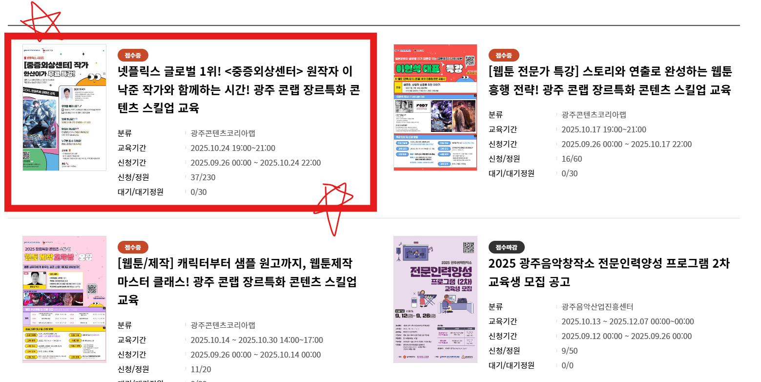 광주정보문화산업진흥원 > 통합지원 > 교육신청